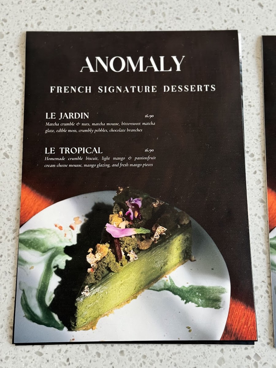 The highlight of their menu is undoubtedly the Tiramisu Sphere, celebrated for its rich textures and flavors. Meanwhile, the Le Jardin offers a beautiful balance of not-too-sweet matcha, nuts, and the Le Mogador presents a unique sour-sweet chocolate fusion that intrigues adventurous palates. Desserts like the L’Opera cake and refreshing lemon tart are equally memorable, showcasing the café's commitment to quality. Whether you're enjoying a meticulously crafted latte or indulging in an exquisite pastry, Anomaly Café is a charming escape from the city's bustle.